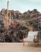The Saguaro Spectrum peel and stick wallpaper from the Host GPO x WRAPPED Studio Collection brings the desert's vibrant palette to life. This design celebrates the iconic saguaro cactus standing tall amidst the richly hued desert flora, offering a tapestry of colors that are as wild and spirited as the landscape itself.